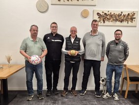 Auf dem Bild sind zu sehen - von links: Reinhard Weindler (TSV-Ehrenamtsbeauftragter, Thomas Hiltl (TSV-Abteilungsleiter Fußball), Reinhard Rengsberger (BFV BEAR), Helmut Hettler (TSV-Vorstand) und Stefan Jemetz (TSV-Vorstand)